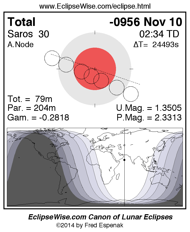 Total Lunar Eclipse of -0956 Nov 10 (0957 Nov 10 BCE)