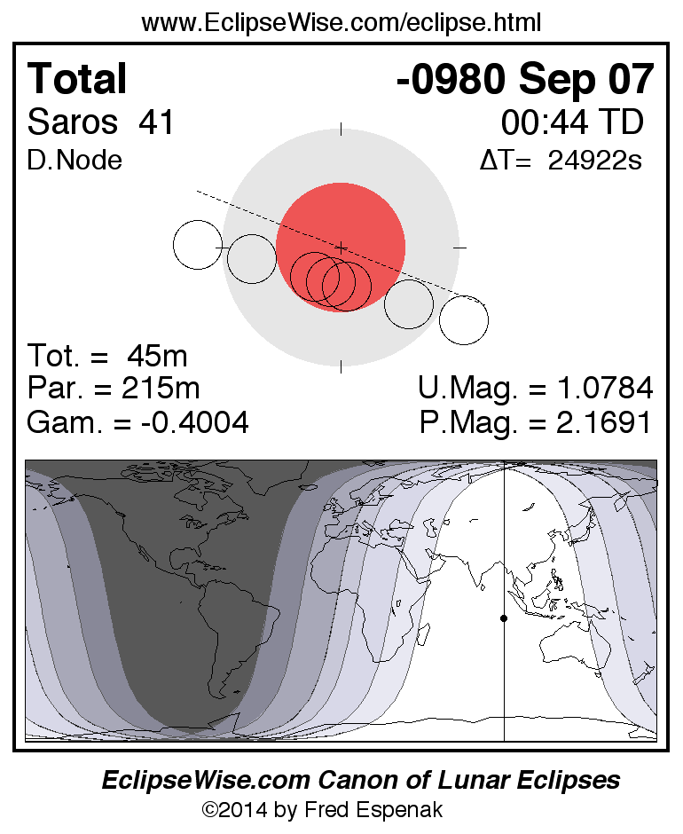 Total Lunar Eclipse of -0980 Sep 07 (0981 Sep 07 BCE)