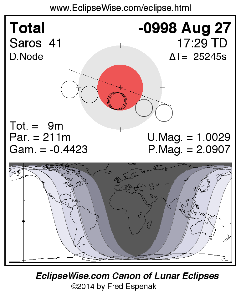 Total Lunar Eclipse of -0998 Aug 27 (0999 Aug 27 BCE)