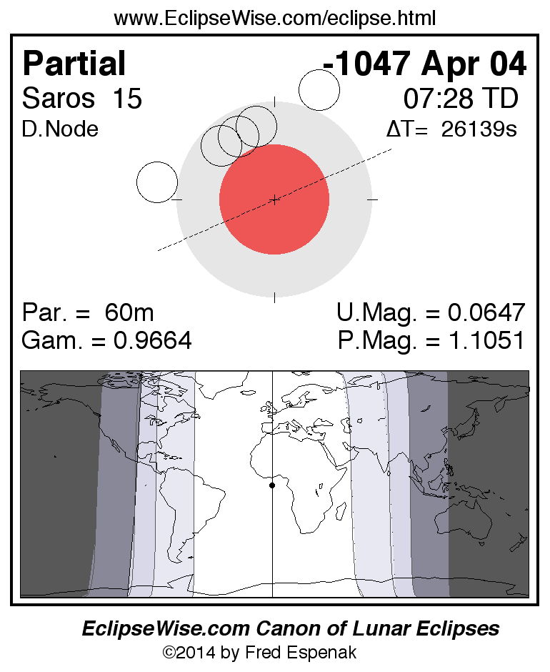 The instant of greatest eclipse takes place on -1047 Apr 04 at 07:28:21 TD (00:12:46 UT1).