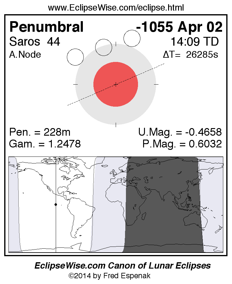 The instant of greatest eclipse takes place on -1055 Apr 02 at 14:08:56 TD (06:50:54 UT1).