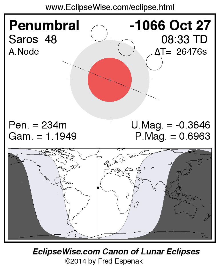 Penumbral Lunar Eclipse of -1066 Oct 27