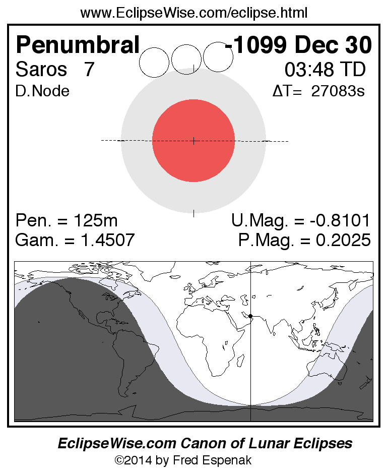 Penumbral Lunar Eclipse of -1099 Dec 30