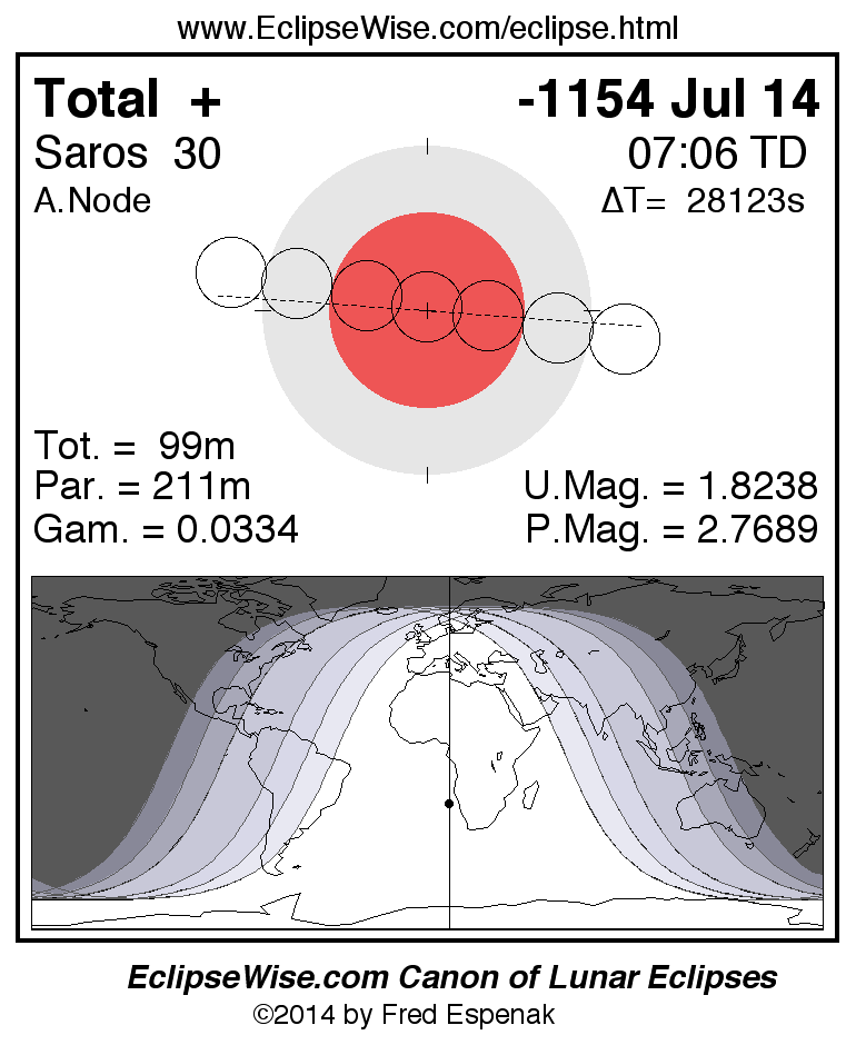 Total Lunar Eclipse of -1154 Jul 14 (1155 Jul 14 BCE)