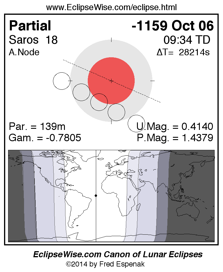 The partial lunar eclipse of -1159 Oct 06 is followed two weeks later by a annular solar eclipse on -1159 Oct 20.