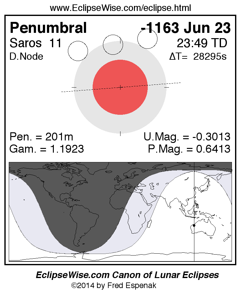 Penumbral Lunar Eclipse of -1163 Jun 23