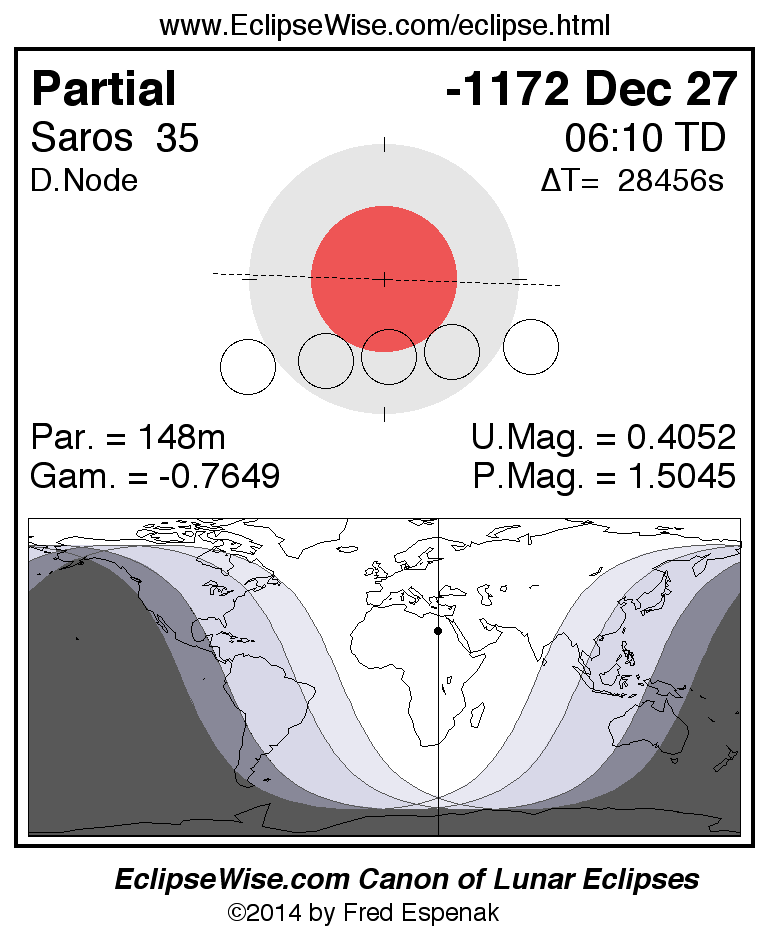 Partial Lunar Eclipse of -1172 Dec 27 (1173 Dec 27 BCE)
