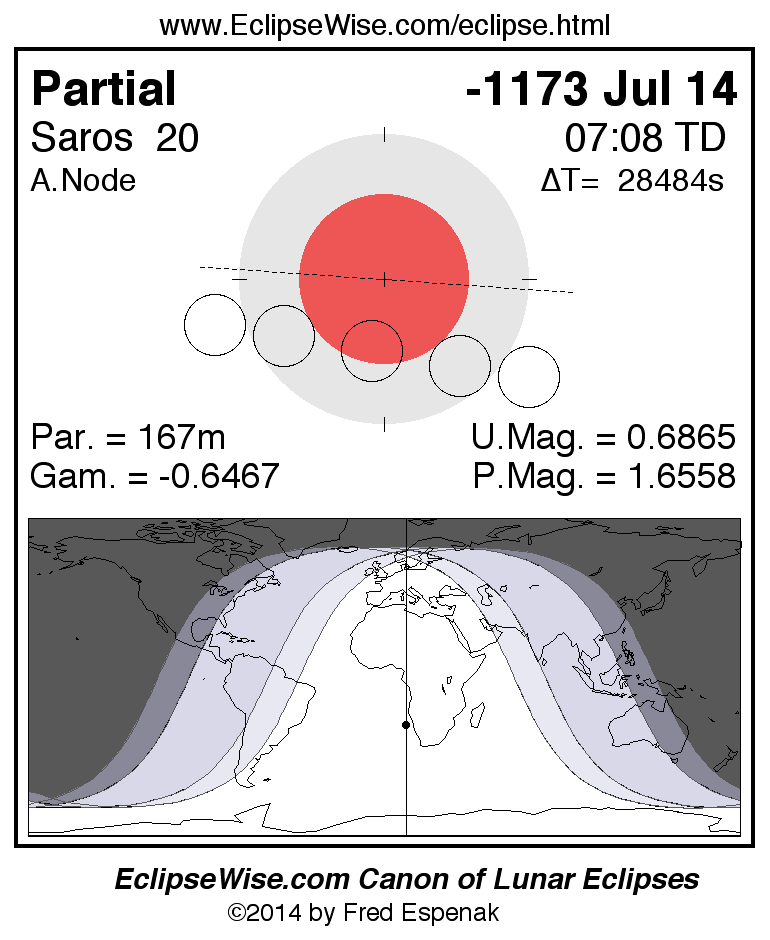 Partial Lunar Eclipse of -1173 Jul 14 (1174 Jul 14 BCE)