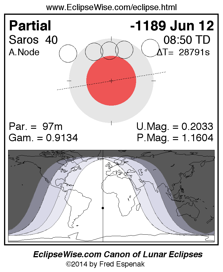The instant of greatest eclipse takes place on -1189 Jun 12 at 08:49:40 TD (00:49:52 UT1).