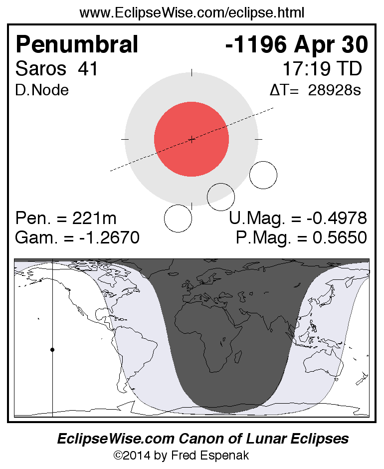 The penumbral lunar eclipse of -1196 Apr 30 is preceded two weeks earlier by a total solar eclipse on -1196 Apr 15.