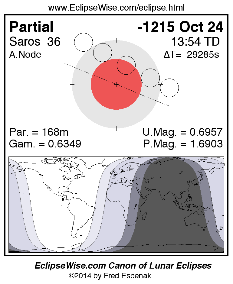 The instant of greatest eclipse takes place on -1215 Oct 24 at 13:53:56 TD (05:45:55 UT1).