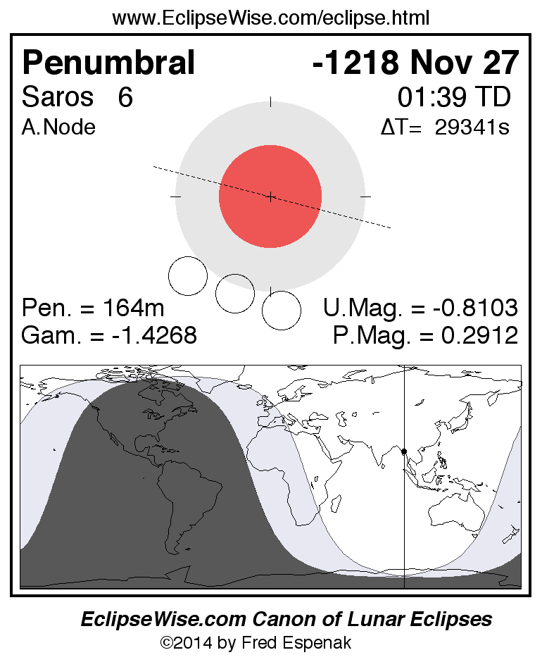 Penumbral Lunar Eclipse of -1218 Nov 27 (1219 Nov 27 BCE)