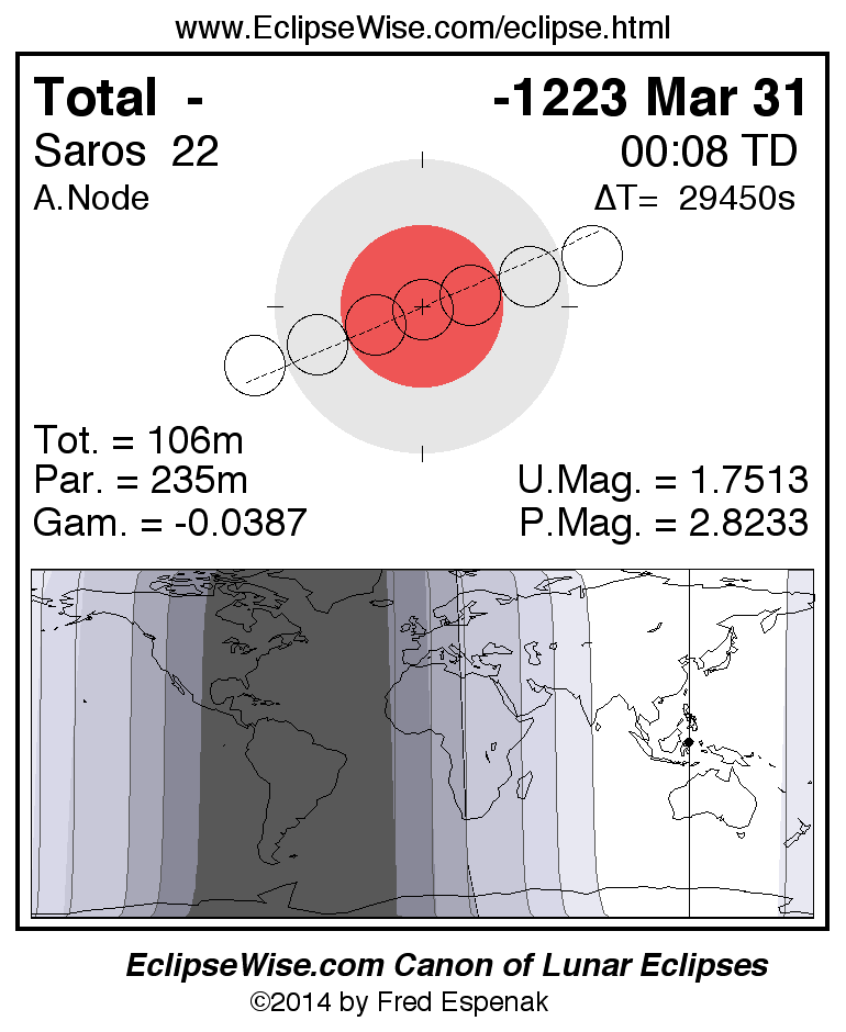 Total Lunar Eclipse of -1223 Mar 31 (1224 Mar 31 BCE)
