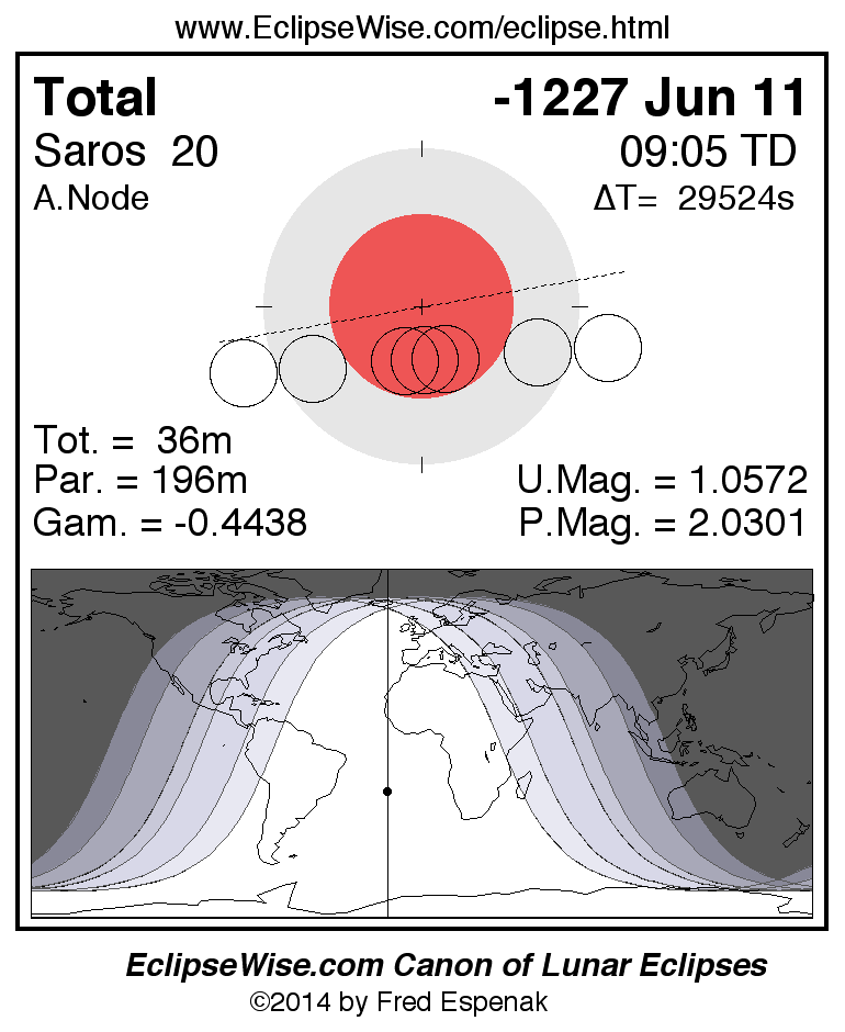 Total Lunar Eclipse of -1227 Jun 11 (1228 Jun 11 BCE)