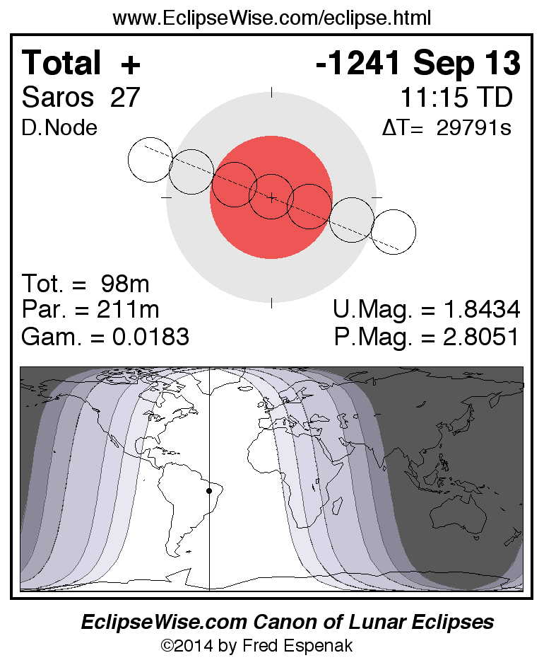 The total lunar eclipse of -1241 Sep 13 is preceded two weeks earlier by a partial solar eclipse on -1241 Aug 29,