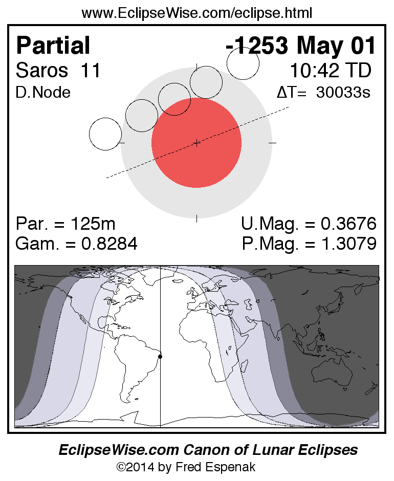 The instant of greatest eclipse takes place on -1253 May 01 at 10:41:52 TD (02:21:23 UT1).