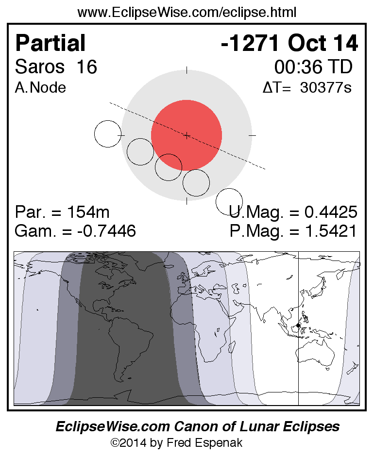 The instant of greatest eclipse takes place on -1271 Oct 14 at 00:35:47 TD (16:09:34 UT1).