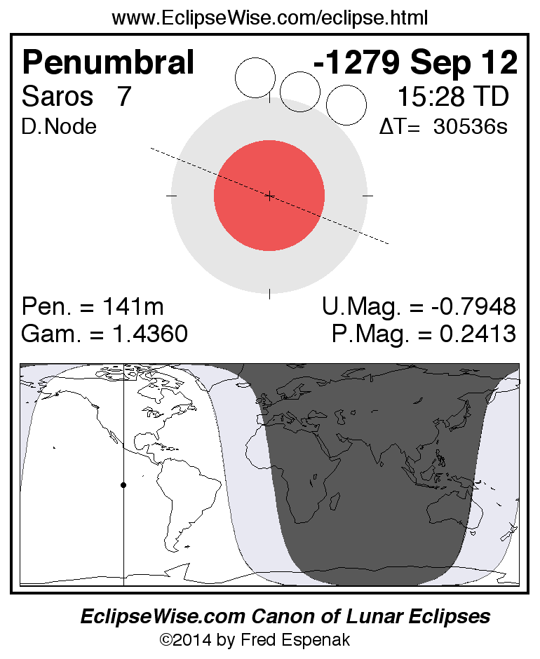 Penumbral Lunar Eclipse of -1279 Sep 12 (1280 Sep 12 BCE)