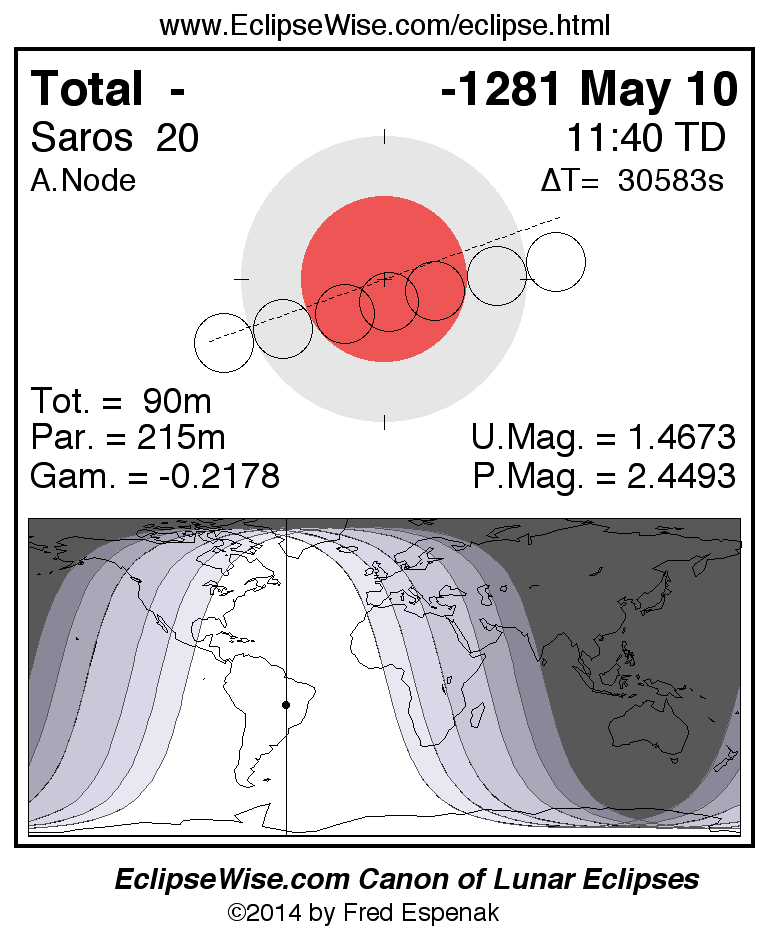 Total Lunar Eclipse of -1281 May 10 (1282 May 10 BCE)