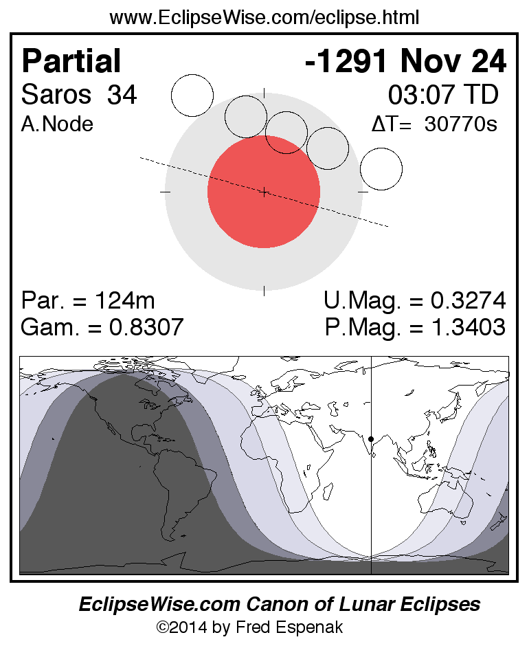 The instant of greatest eclipse takes place on -1291 Nov 24 at 03:07:25 TD (18:34:39 UT1).