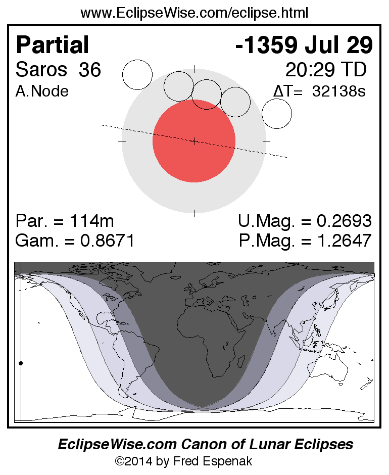 The instant of greatest eclipse takes place on -1359 Jul 29 at 20:28:54 TD (11:33:20 UT1).