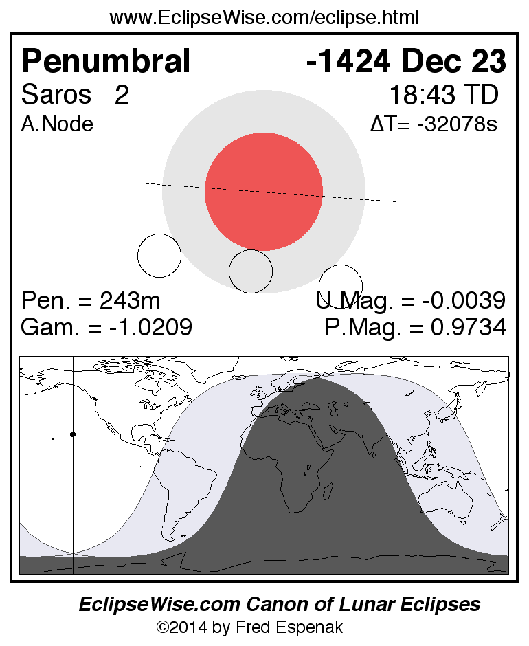 The instant of greatest eclipse takes place on -1424 Dec 23 at 18:42:56 TD (09:25:22 UT1).