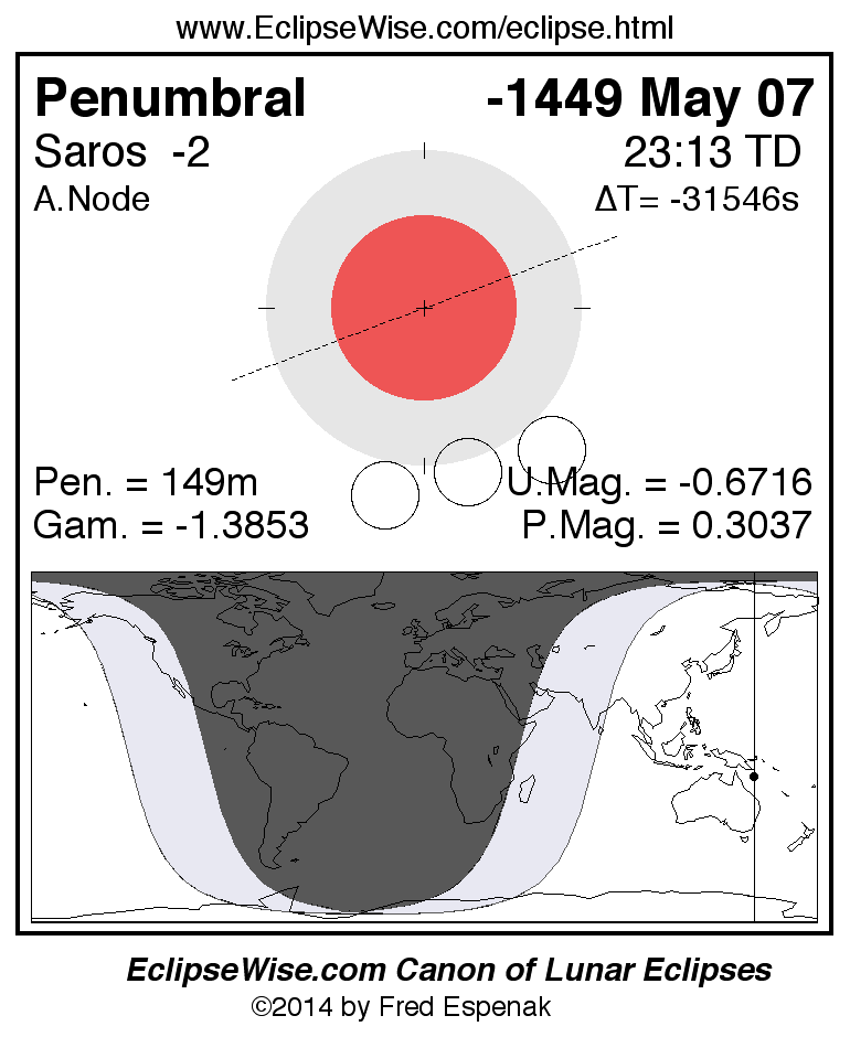 Penumbral Lunar Eclipse of -1449 May 07 (1450 May 07 BCE)