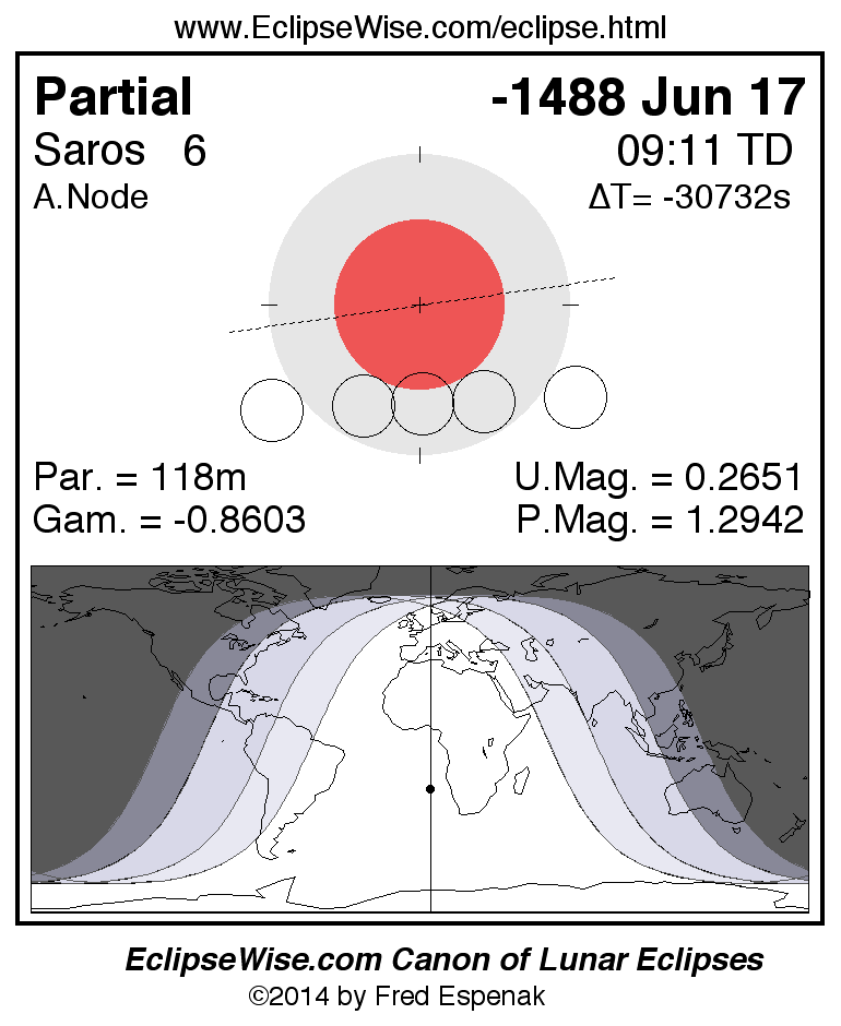 The instant of greatest eclipse takes place on -1488 Jun 17 at 09:11:03 TD (23:31:04 UT1).