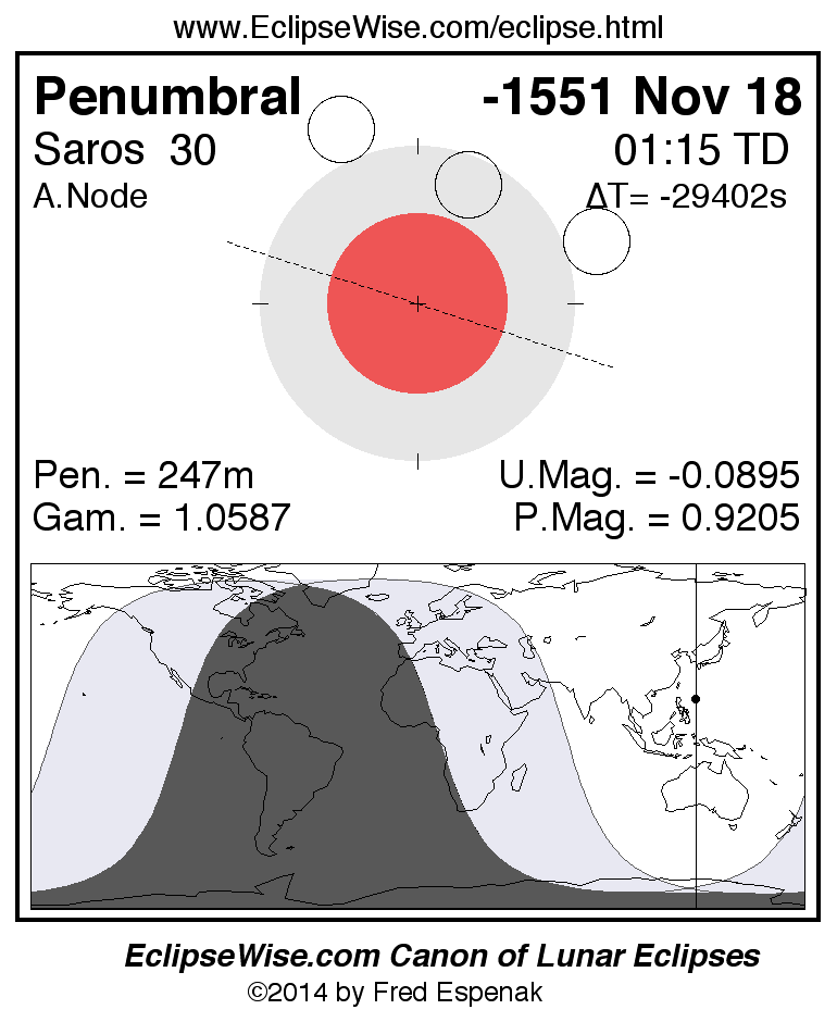 Polynomial Besselian Elements: Penumbral Lunar Eclipse of -1551 Nov 18