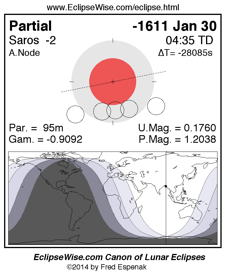 The instant of greatest eclipse takes place on -1611 Jan 30 at 04:34:40 TD (18:10:34 UT1).