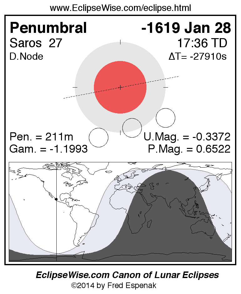 Penumbral Lunar Eclipse of -1619 Jan 28