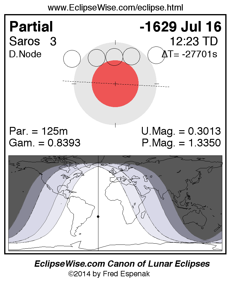 Partial Lunar Eclipse of -1629 Jul 16 (1630 Jul 16 BCE)