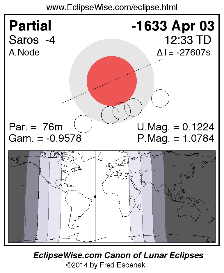 The partial lunar eclipse of -1633 Apr 03 is followed two weeks later by a annular solar eclipse on -1633 Apr 17.