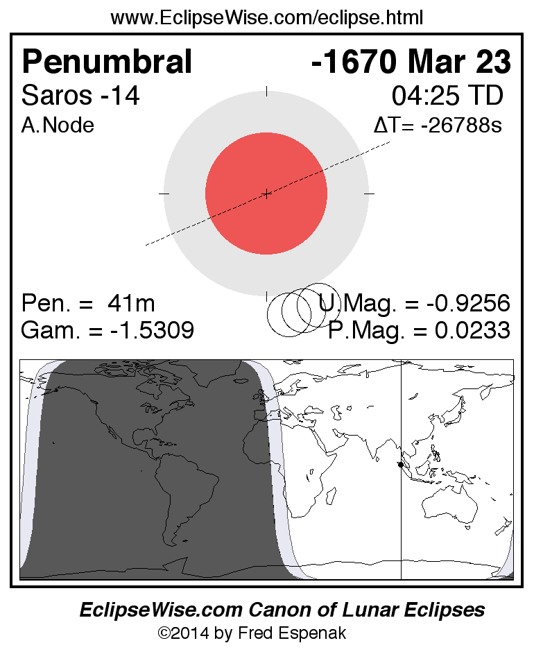The instant of greatest eclipse takes place on -1670 Mar 23 at 04:24:41 TD (17:38:58 UT1).
