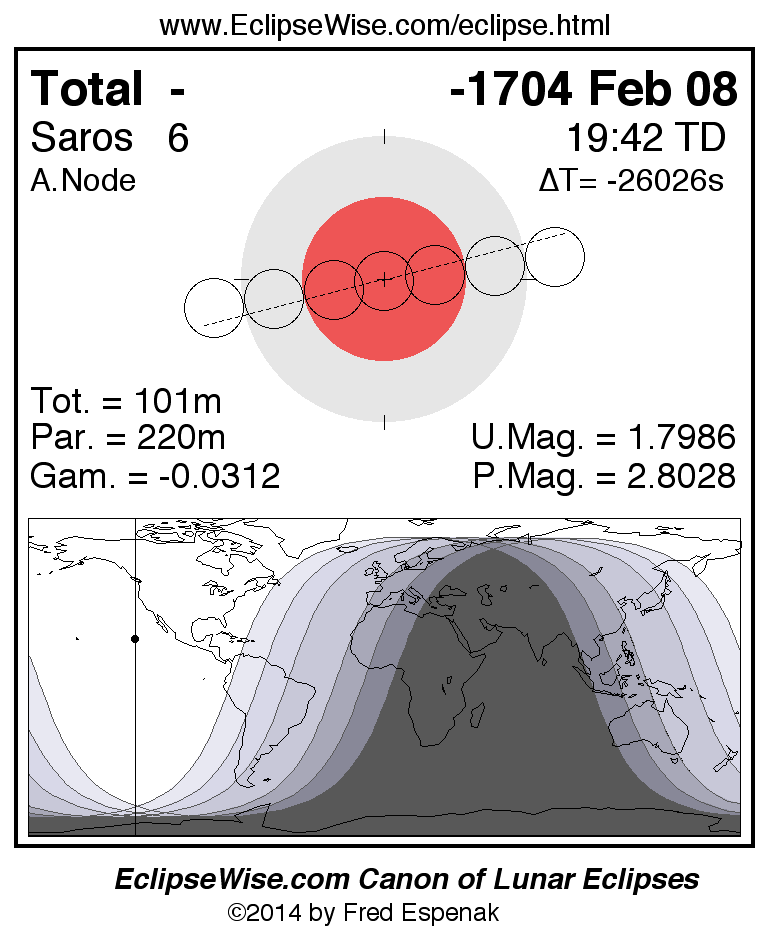 Total Lunar Eclipse of -1704 Feb 08 (1705 Feb 08 BCE)
