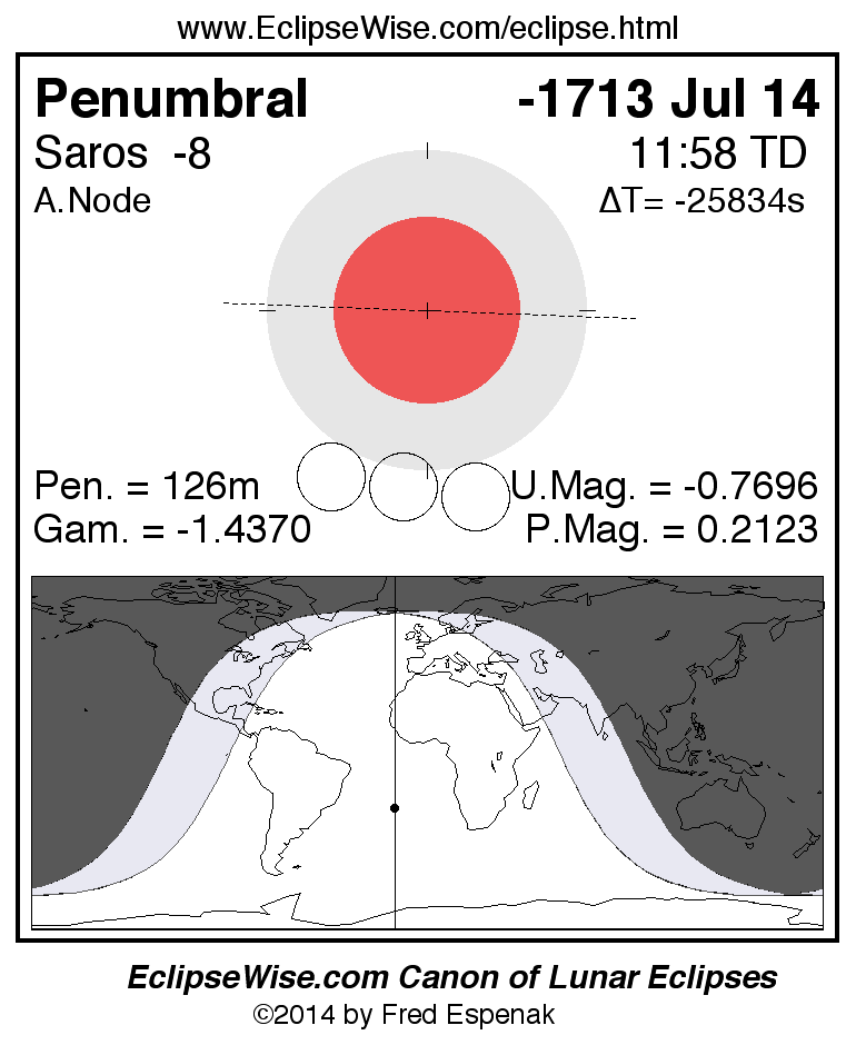 Penumbral Lunar Eclipse of -1713 Jul 14