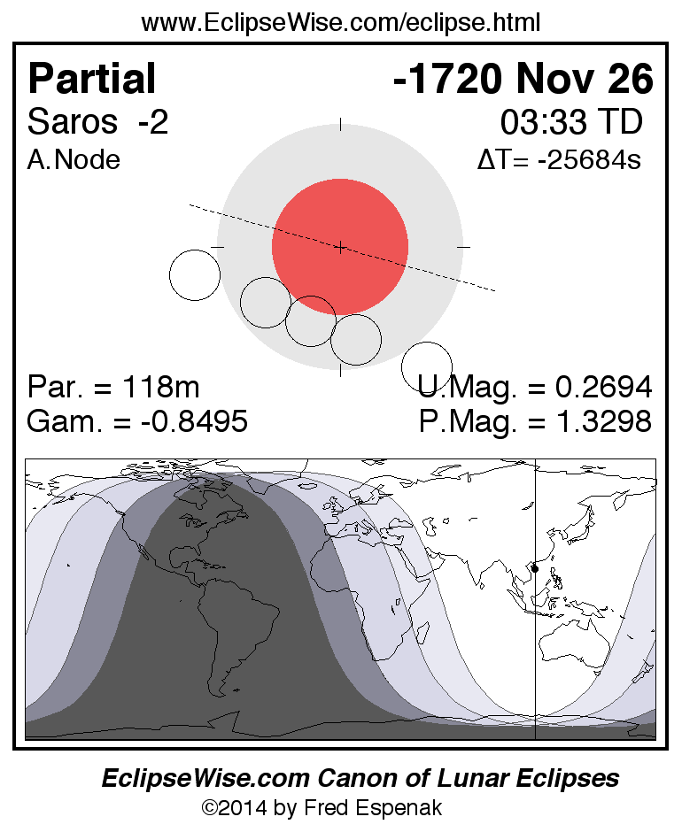 The instant of greatest eclipse takes place on -1720 Nov 26 at 03:32:37 TD (16:28:31 UT1).