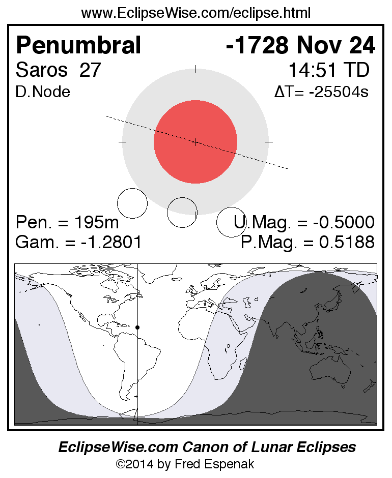 Another lunar eclipse occurs one synodic month before the -1728 Nov 24 eclipse. It is the penumbral lunar eclipse of -1728 Oct 26.