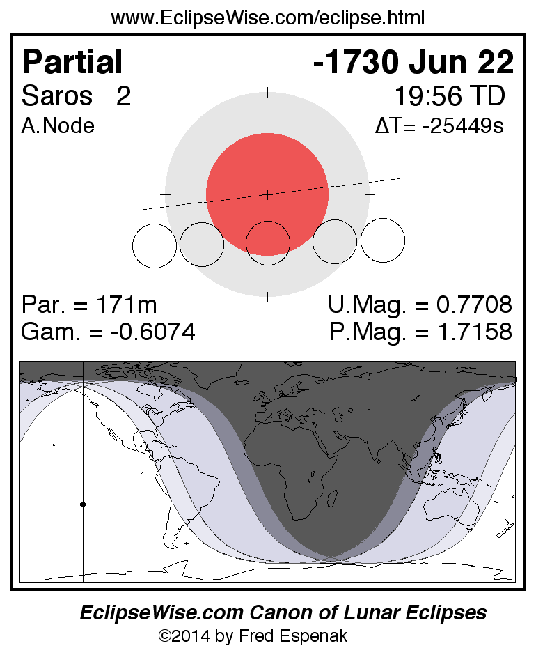 The instant of greatest eclipse takes place on -1730 Jun 22 at 19:55:53 TD (08:47:51 UT1).
