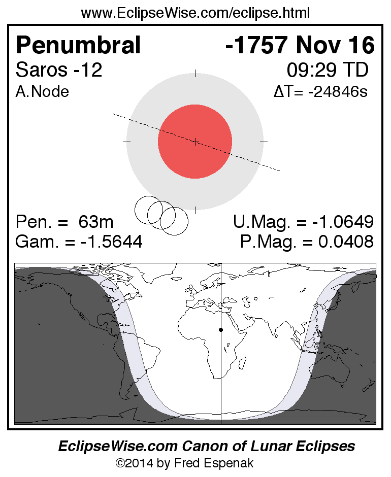 Penumbral Lunar Eclipse of -1757 Nov 16