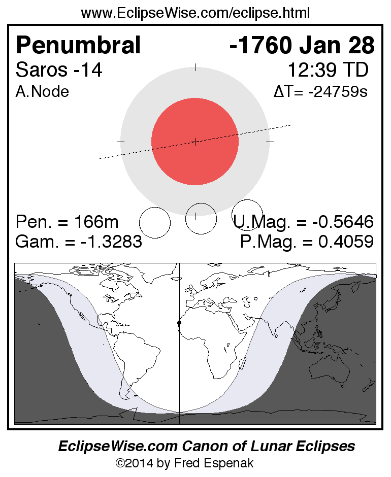 Penumbral Lunar Eclipse of -1760 Jan 28