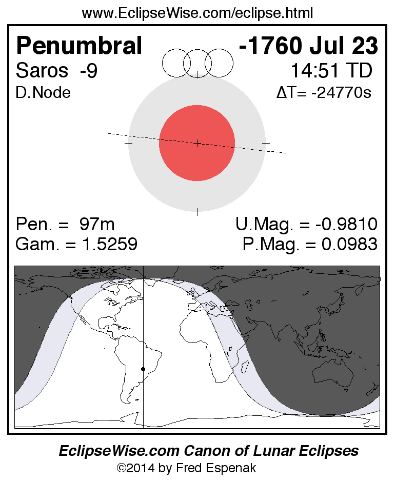 The penumbral lunar eclipse of -1760 Jul 23 is followed two weeks later by a total solar eclipse on -1760 Aug 07.