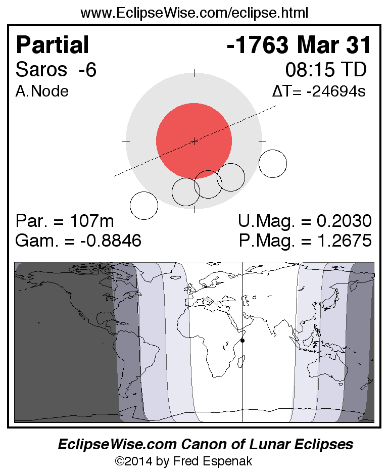Partial Lunar Eclipse of -1763 Mar 31 (1764 Mar 31 BCE)