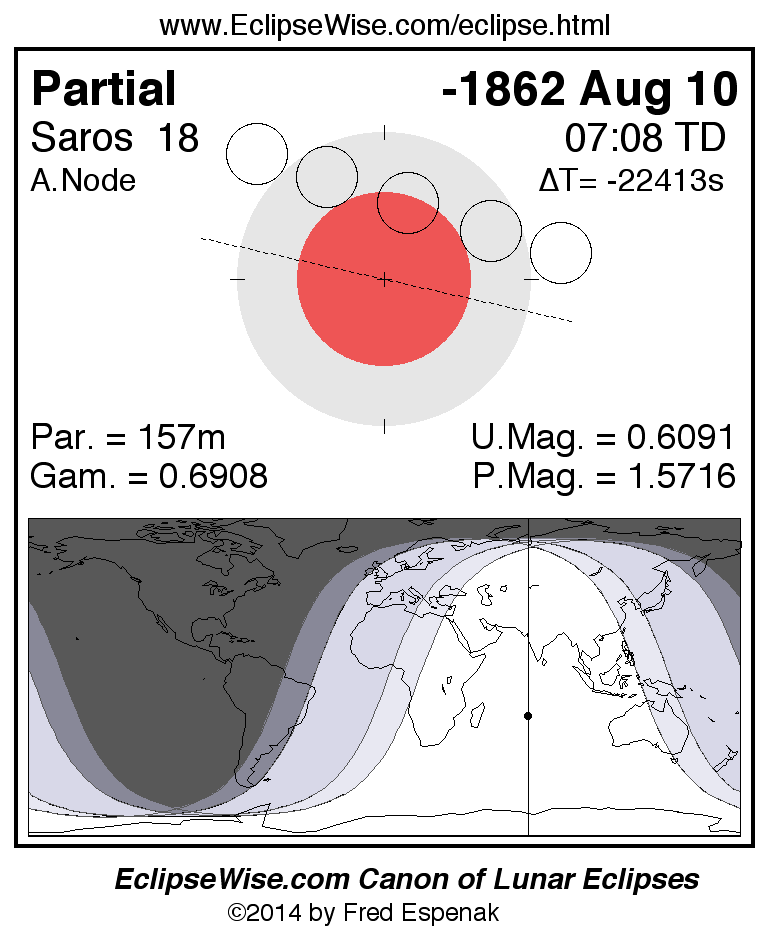 The instant of greatest eclipse takes place on -1862 Aug 10 at 07:07:59 TD (19:09:21 UT1).