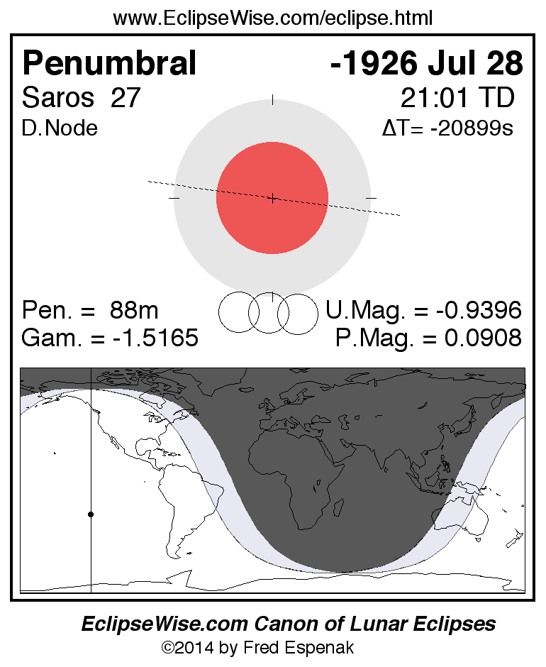 Penumbral Lunar Eclipse of -1926 Jul 28