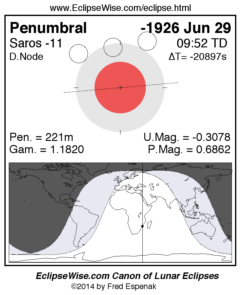 Penumbral Lunar Eclipse of -1926 Jun 29
