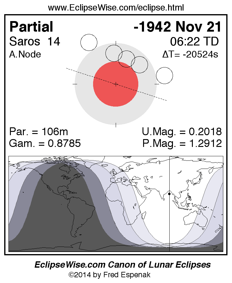 The instant of greatest eclipse takes place on -1942 Nov 21 at 06:21:54 TD (17:51:48 UT1).