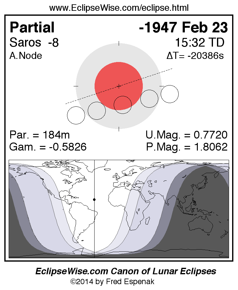 The partial lunar eclipse of -1947 Feb 23 is followed two weeks later by a total solar eclipse on -1947 Mar 11.