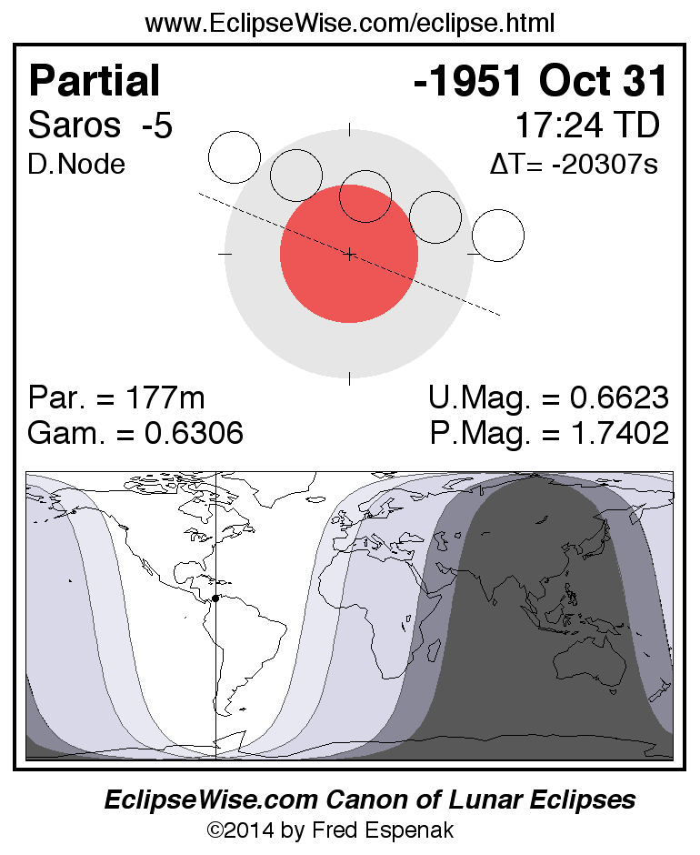 The instant of greatest eclipse takes place on -1951 Oct 31 at 17:23:45 TD (04:50:01 UT1).
