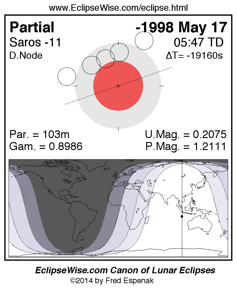 The instant of greatest eclipse takes place on -1998 May 17 at 05:46:39 TD (16:53:49 UT1).
